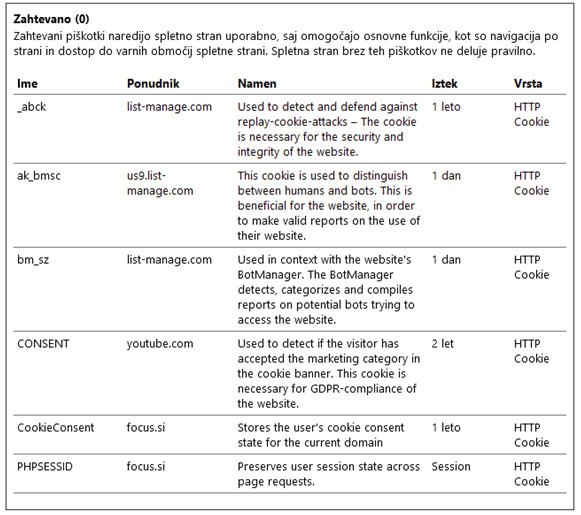 Vsa nadaljna vprašanja o piškotkih nam lahko sporočite na elektronski naslov info@focus.si.